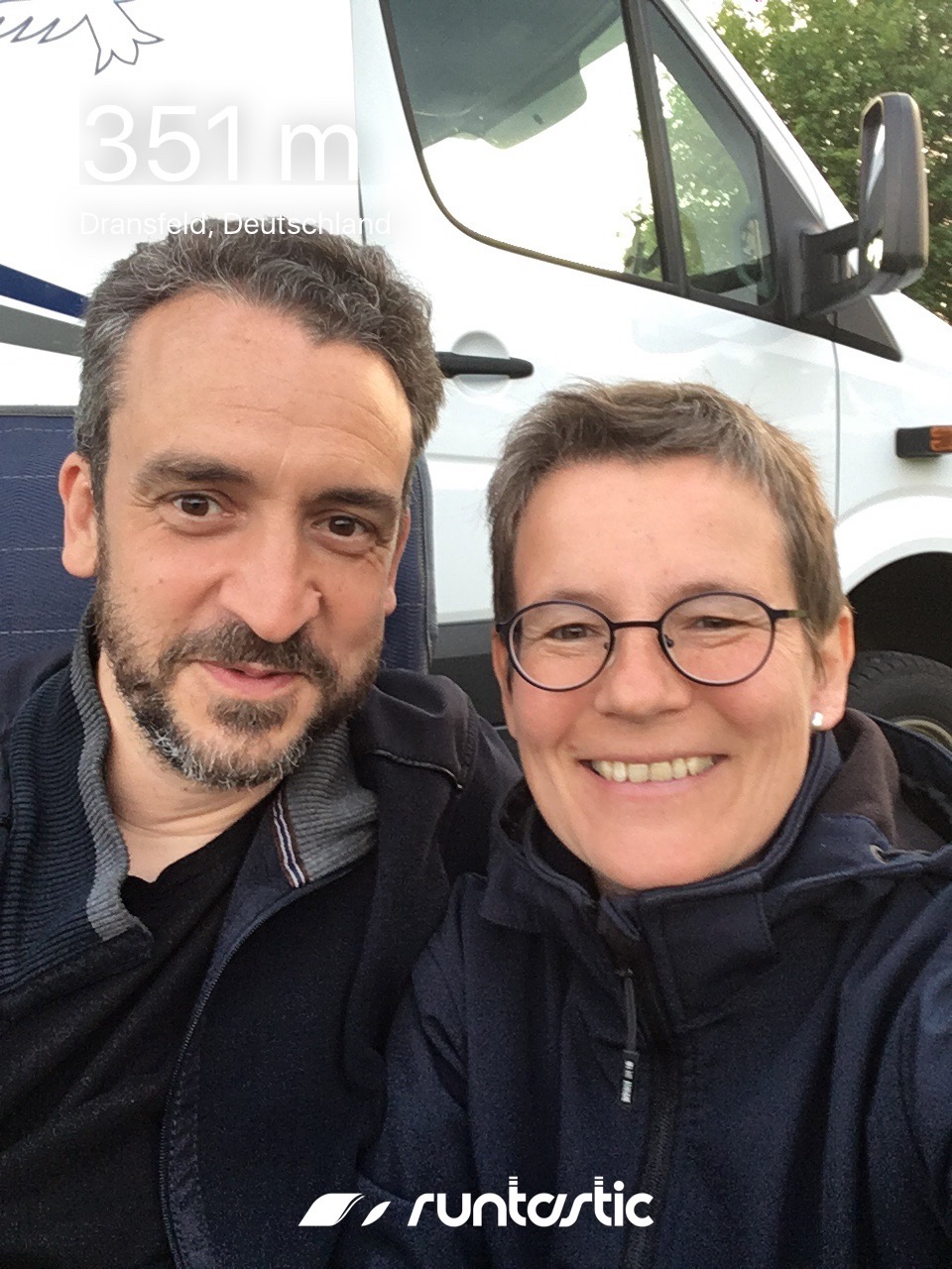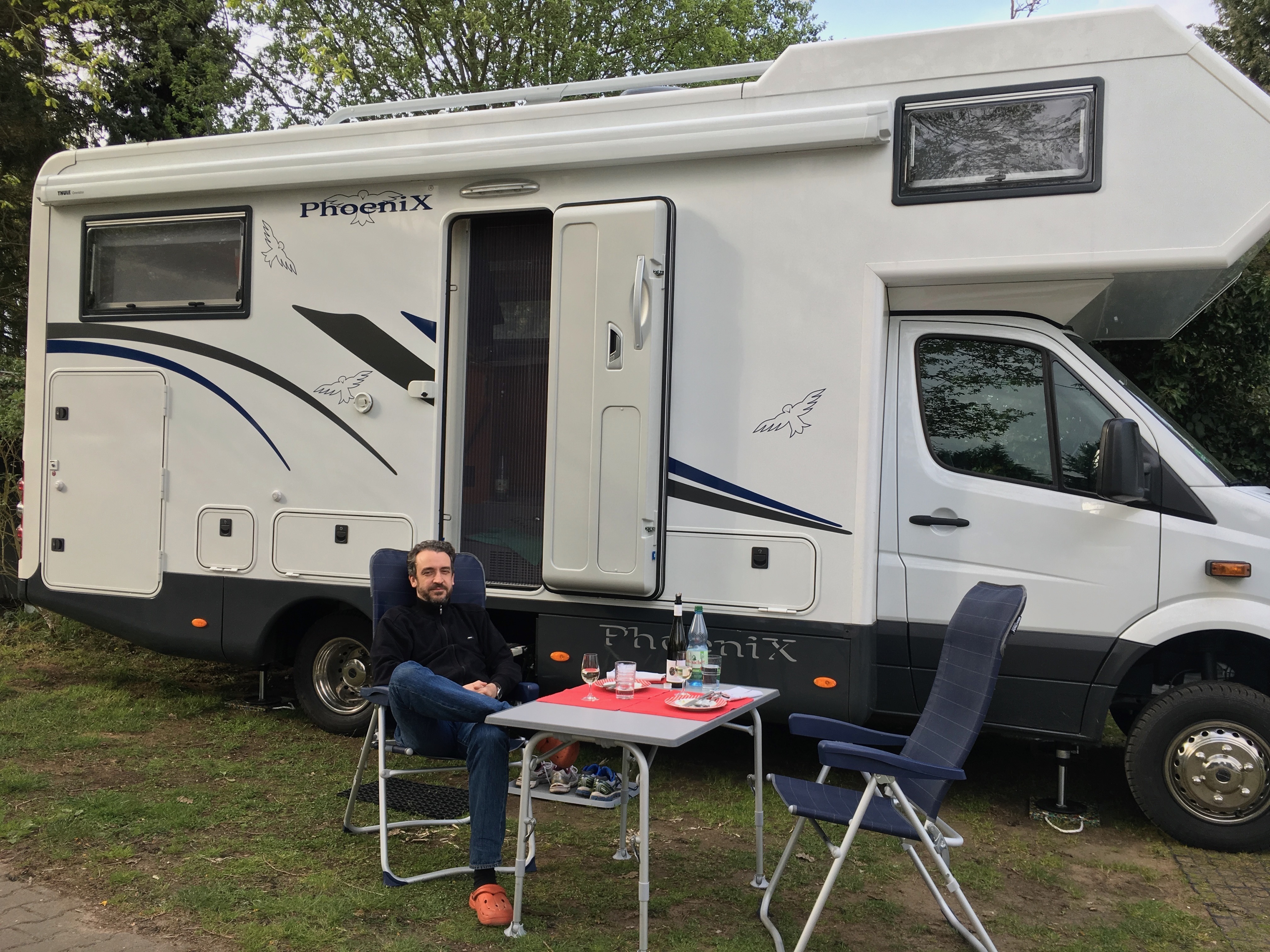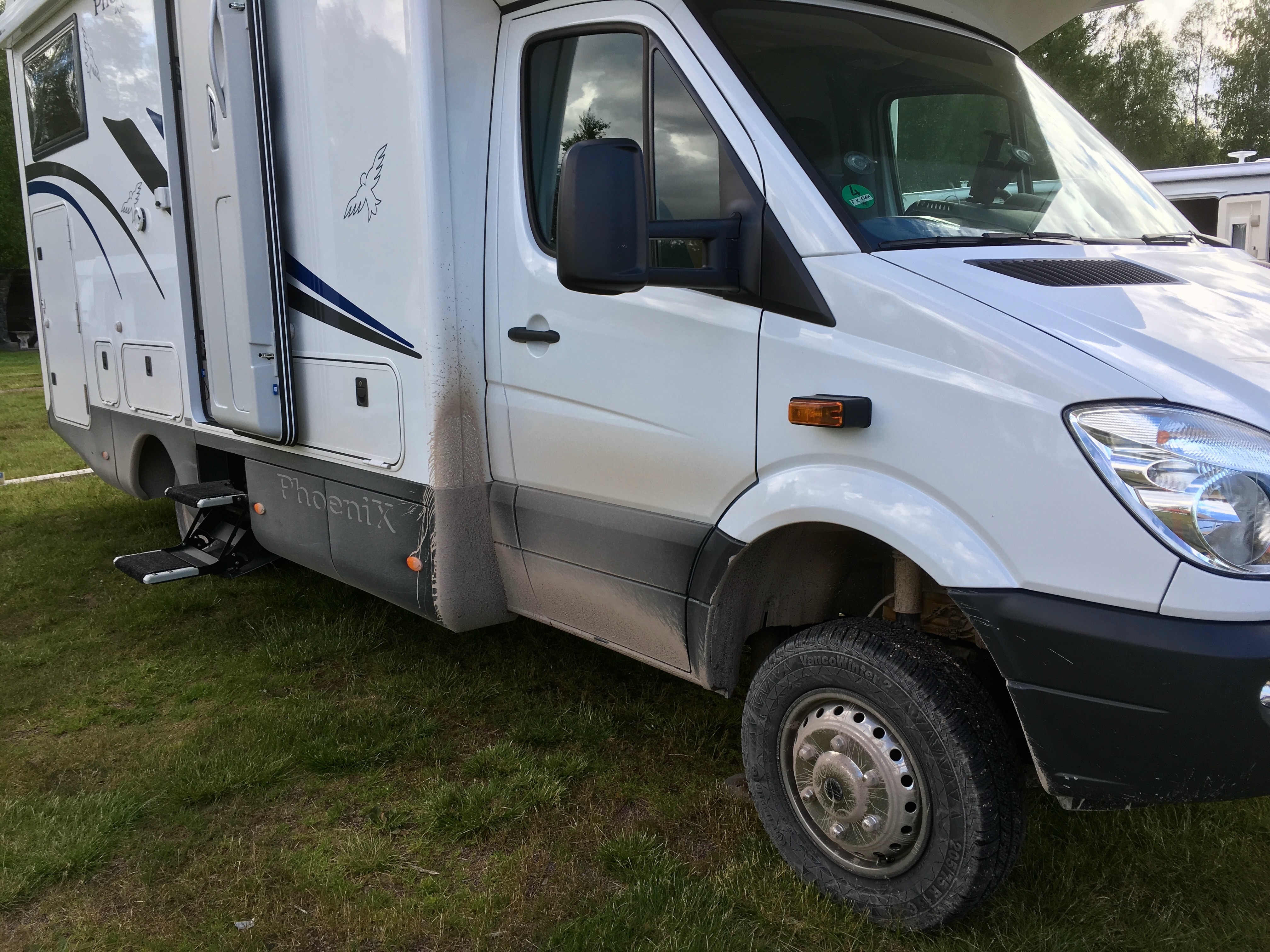 Am Dienstag freute sich der PhoeniX-Händler über unseren Besuch, er hatte wie immer keine Zeit, deshalb hatten wir uns auch nicht vorher angekündigt. Das Prinzip hat er uns auch für den Besuch bei PhoeniX direkt empfohlen, er kennt das offenbar selbst. Das Schloss hat er sich angesehen und etwa eine Stunde Aufwand geschätzt, weil er die Mechanik nicht kennt. Mein Hinweis, dass uns die Hubstützen wichtiger sind, hat er direkt berücksichtigt und nach kurzer Zeit die Stelle im Handbuch gefunden, wie die Stütze neu konfiguriert werden muss. Die Tests auf seinem Hof und am Abend auf dem Campingplatz verlaufen erfolgreich.