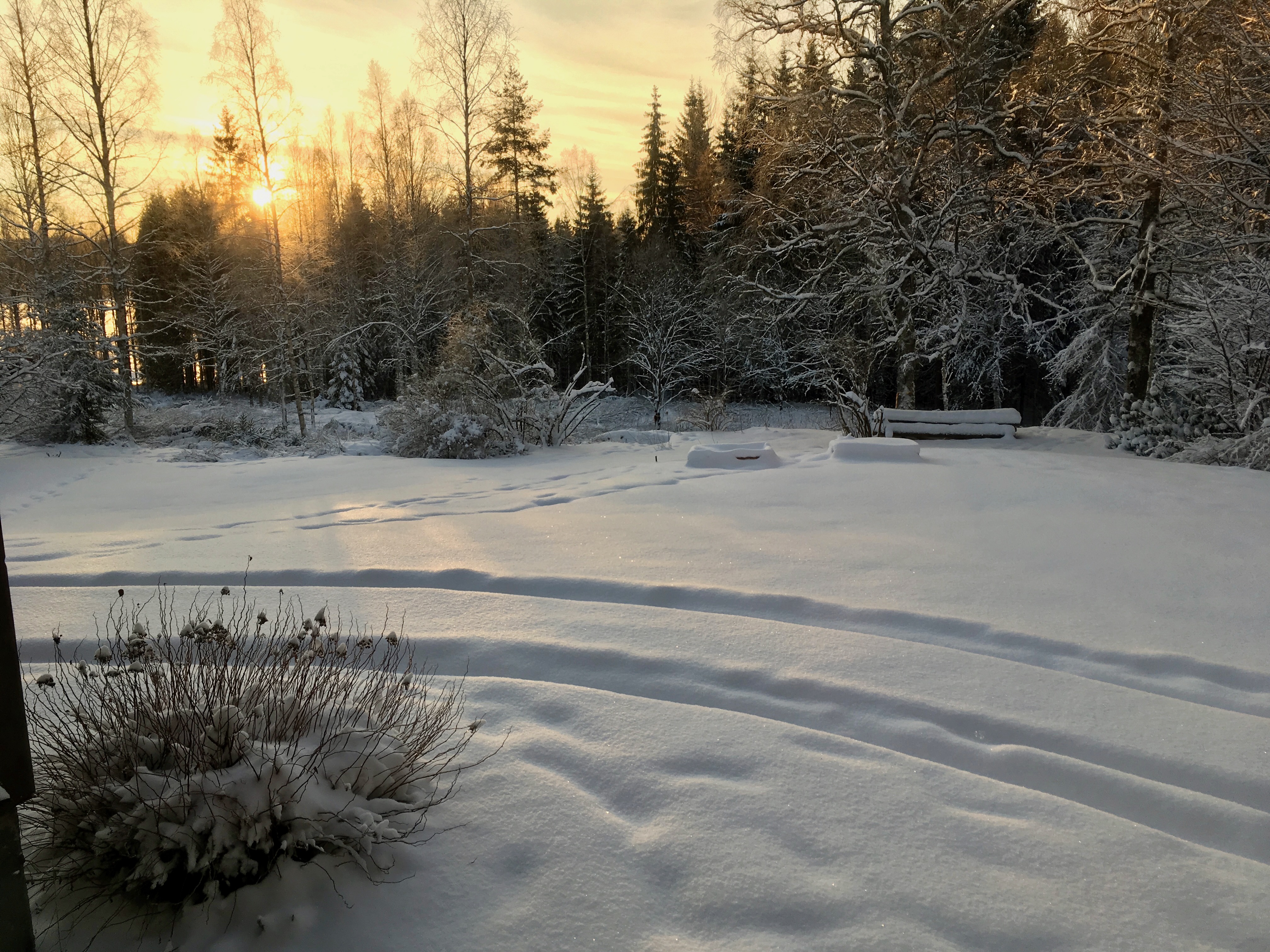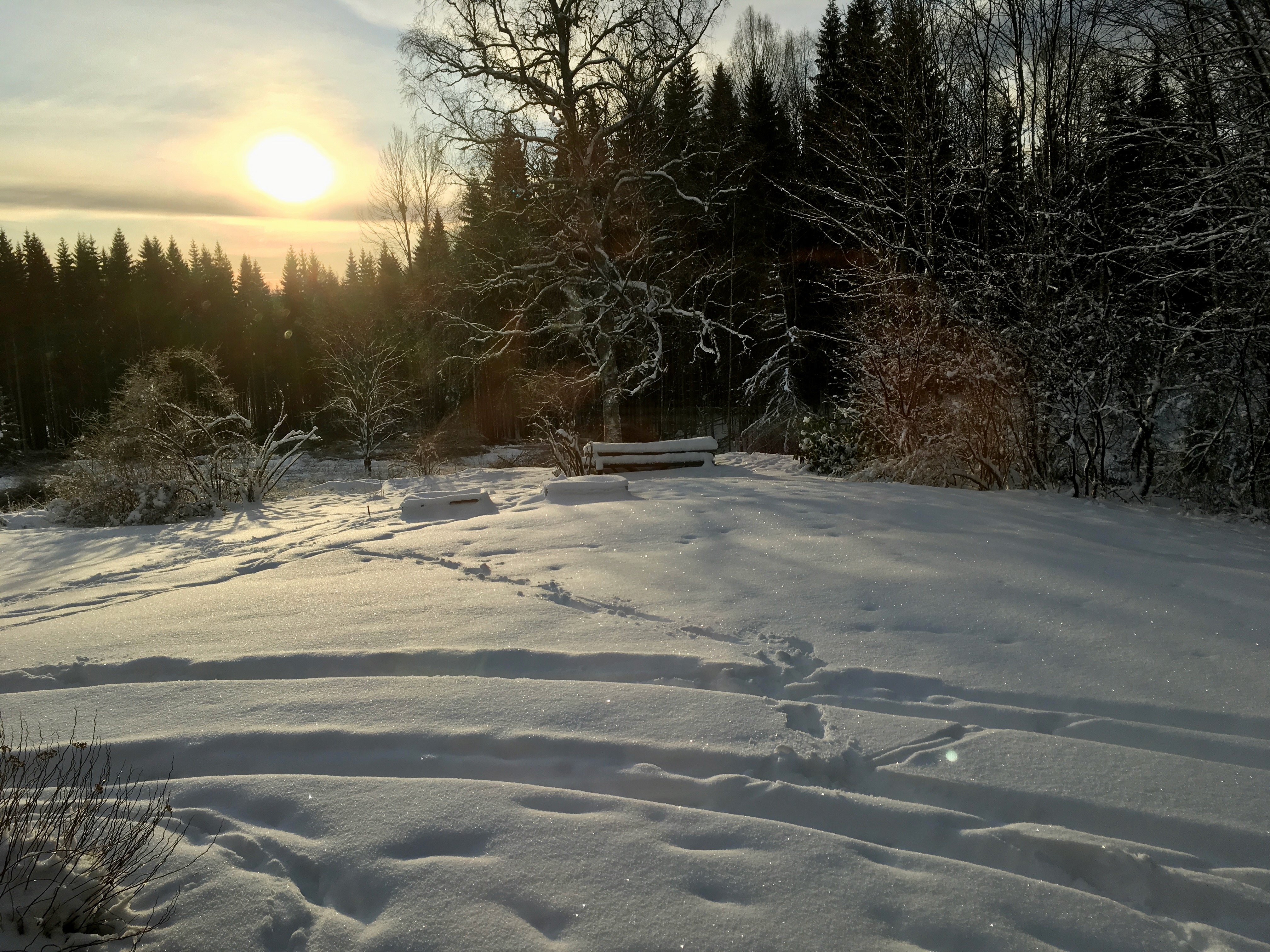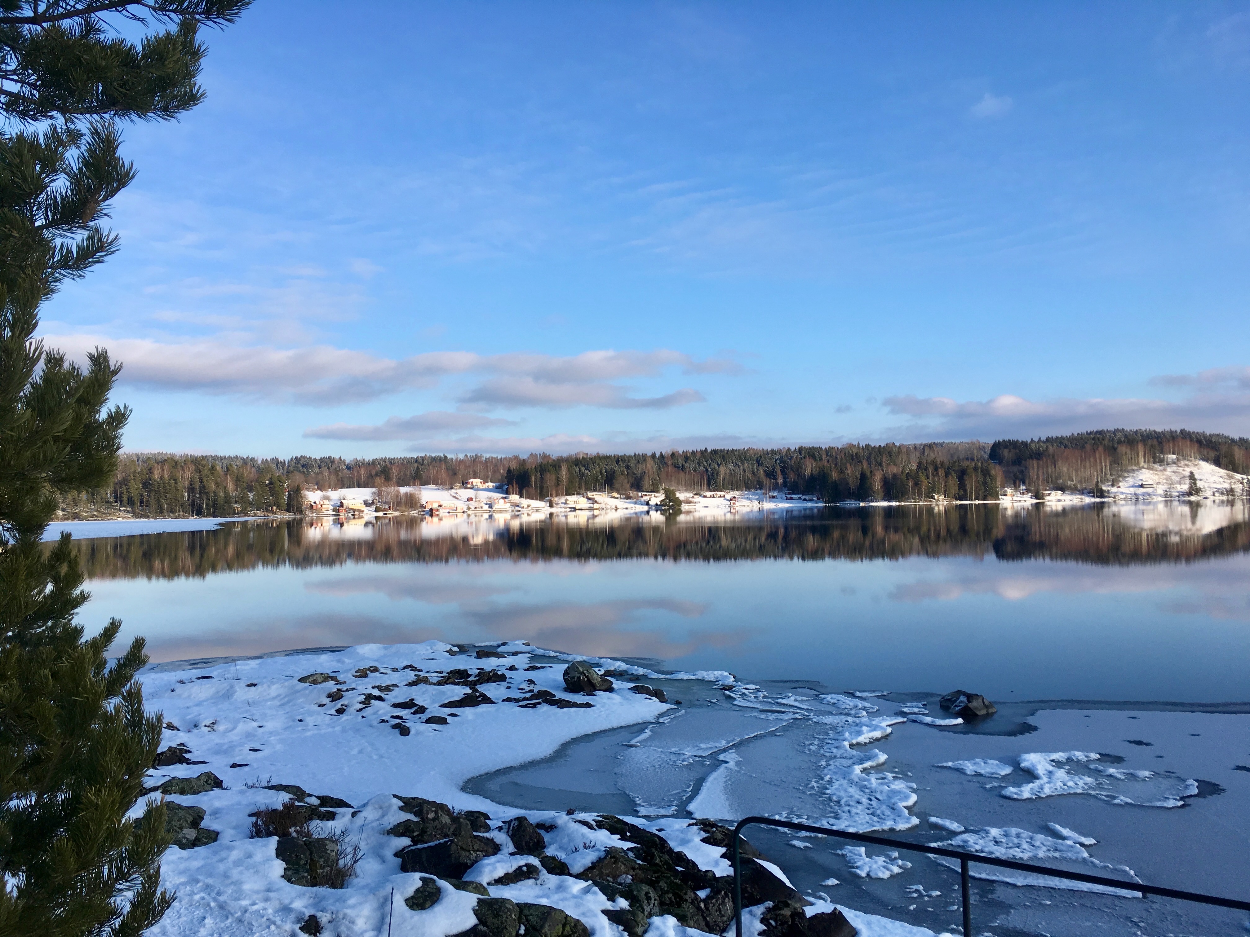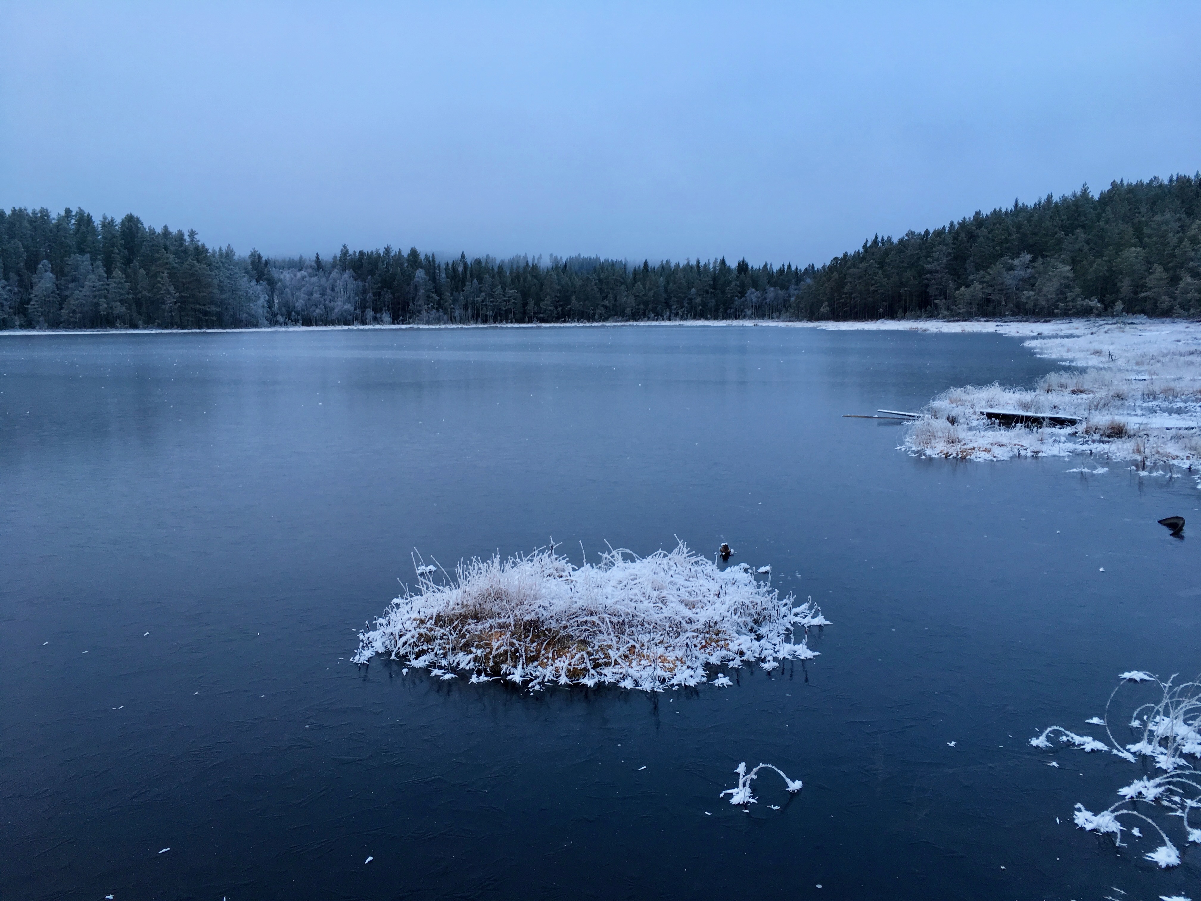 Jetzt ist es richtig kalt geworden. In den Nächten sinkt das Thermometer auf -14 °C, tagsüber freuen wir uns, wenn es auf - 5 °C ansteigt. Wie immer ist es unglaublich schön, wenn die Sonne vom stahlblauen Himmel strahlt, allerdings ist es dann auch unglaublich kalt. Heute war es den ganzen Tag neblig - und trotzdem unglaublich kalt, mit Höchsttemperaturen von -6 °C. Und wie wir in Frankfurt immer beim Joggen trotz unwirtlichem Wetter geunkt haben: das Joggen ist freiwillig, die Hundebesitzer müssen raus. So langsam gewöhnen wir uns an die tiefen Temperaturen, glücklicherweise ist unser Hund mehr als winterfest, er fühlt sich auch bei -11 °C draußen pudelwohl, springt durch die von Rauhreif weiß überzogene Landschaft und testet das Eis auf dem See und auf den Pfützen. Bei der Kälte nimmt unsere Geduld sehr schnell ab, wenn Moritz an jedem Strohhalm und Busch lange schnuppern möchte, das hat er inzwischen mitgekriegt und folgt etwas einfacher auf unsere Rufe.