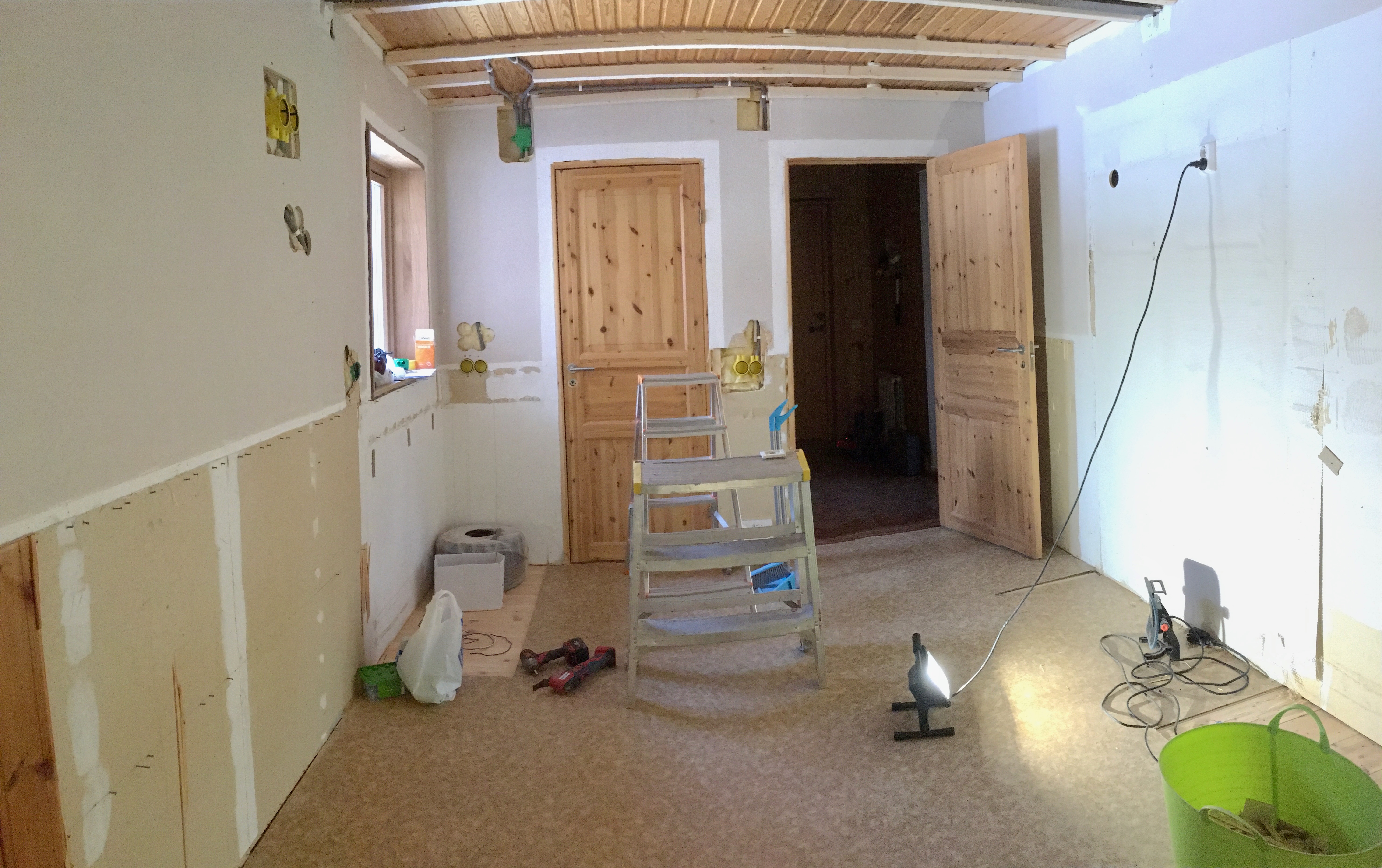 Das Ganze hat meine Pläne mit dem Gemüseanbau ziemlich zurück geworfen. Dafür haben wir nach dem Dach decken endlich die Abflussrohre der Regenrinnen angeschlossen, d.h. sie enden nicht mehr 1 m über dem Boden sondern das Wasser wird über vergrabene Rohre abgeleitet. Bis heute hat das schon unglaublich geholfen, dass rund ums Haus keine Moorlandschaft entstanden ist. Dieses Jahr gab es Unmengen von Niederschlag, vor einer Woche gab es wieder mal 15 cm Schnee mit anschließender Wärme, die alles wieder schmelzen ließ. Mit dem Unterschied, dass dieses Jahr die Eisbildung rund ums Haus (bisher) ausgeblieben ist, der Boden war nur sehr nass. Vorher stand das Wasser auf der Wiese.