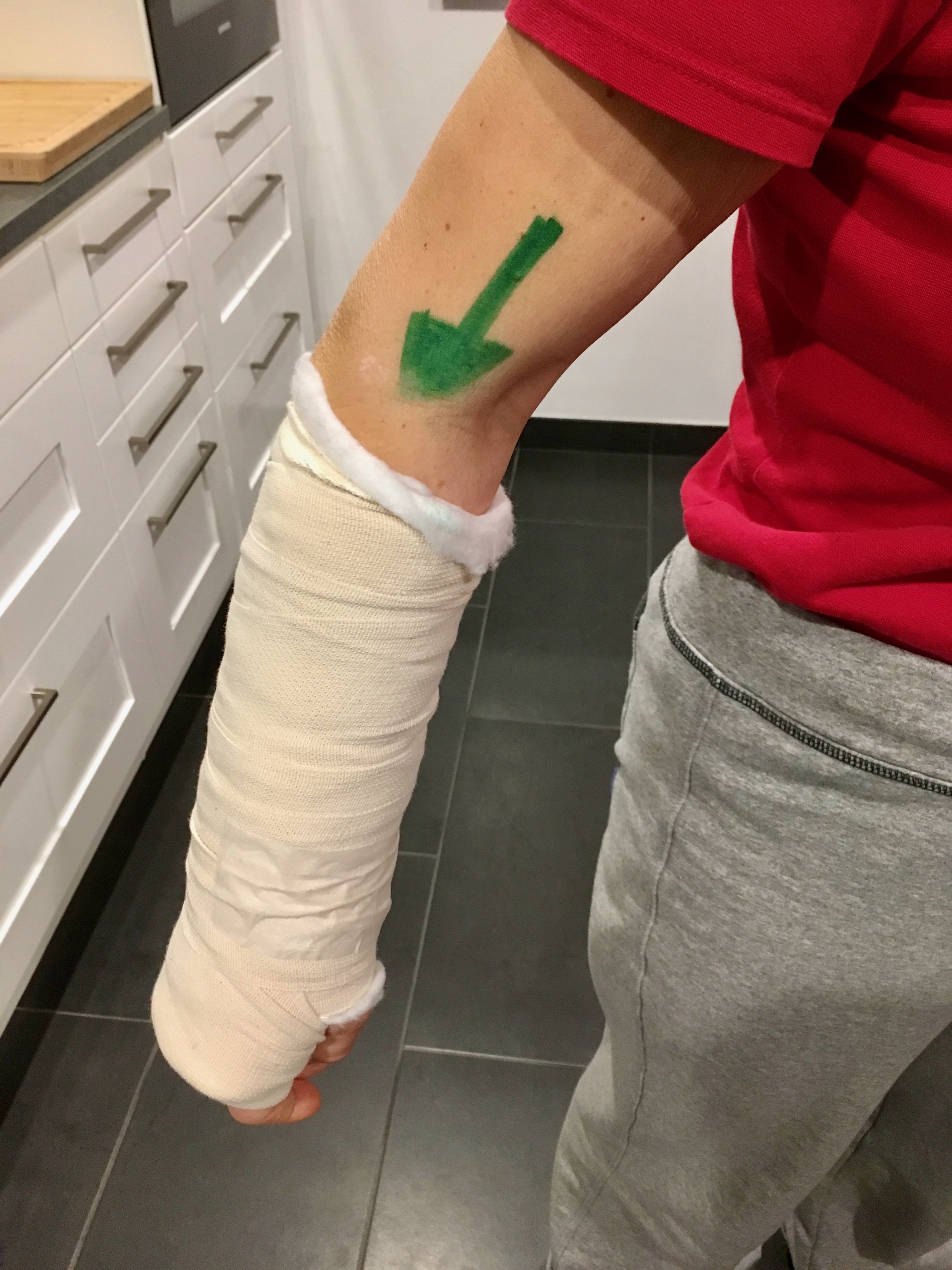 Es dauerte eine ganze Weile bis der Kurs für positives Denken Wirkung zeigte, aber irgendwann kam ich dann doch noch drauf: ich habe einige Kilogramm Körpergewicht verloren in der Zeit und kein einziges Mal den Weg Räumen müssen (armer Heiko…). Während dieser Zeit war ich ehrlicherweise nicht so begeistert davon, über Weihnachten mit Gipsverband rumzulaufen, in der Eiseskälte die Winterjacke nicht richtig schließen zu können (der Gipsarm passte nicht in den Ärmel und vor dem Bauch war ebenfalls zu wenig Platz) und fünf Wochen lang mit einer Hand essen zu müssen. Aber alles geht vorbei und inzwischen denke ich, dass etwa 95 % der Beweglichkeit von vorher wieder hergestellt ist.